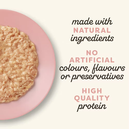 Applaws natvoer is volledig complementair, zonder kunstmatige kleur-, geur- of smaakstoffen. Ideaal als aanvulling op droogvoer of als gezonde traktatie voor je oudere kat.