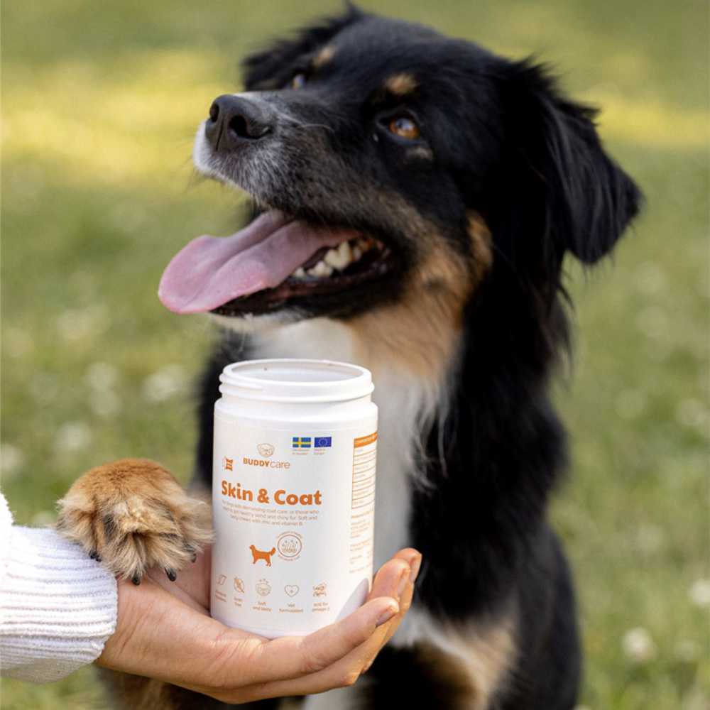 BUDDY – Care Skin & Coat is een natuurlijk voedingssupplement dat de gezondheid van de huid en vacht van je hond ondersteunt. Dankzij de omega-3 vetzuren uit krill en andere essentiële voedingsstoffen dragen deze zachte, kauwbare snacks bij aan een gezonde huid en een glanzende vacht.