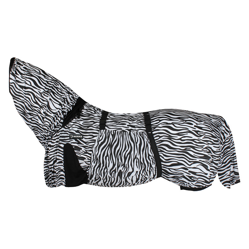Geef je paard de beste bescherming met deze eczeemdeken met hals voor paarden. Deze deken is speciaal ontwikkeld voor paarden met eczeemklachten en beschermt optimaal tegen insecten, dazen en de zon. Dankzij het UV-werende materiaal en het comfortabele ontwerp blijft je paard beschermd én comfortabel tijdens de zomermaanden. De zebrakleur  werkt insectenwerend en zo houd je je paard tevreden en vliegvrij.