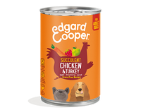 Dit graanvrije recept van Edgard & Cooper combineert veel lekker kip- en kalkoenvlees met voedzaam orgaanvlees zoals hart en lever. Zo krijgt jouw hond een maaltijd vol evenwichtige en licht verteerbare eiwitten, aangevuld met prebiotica voor een gezonde darmflora.