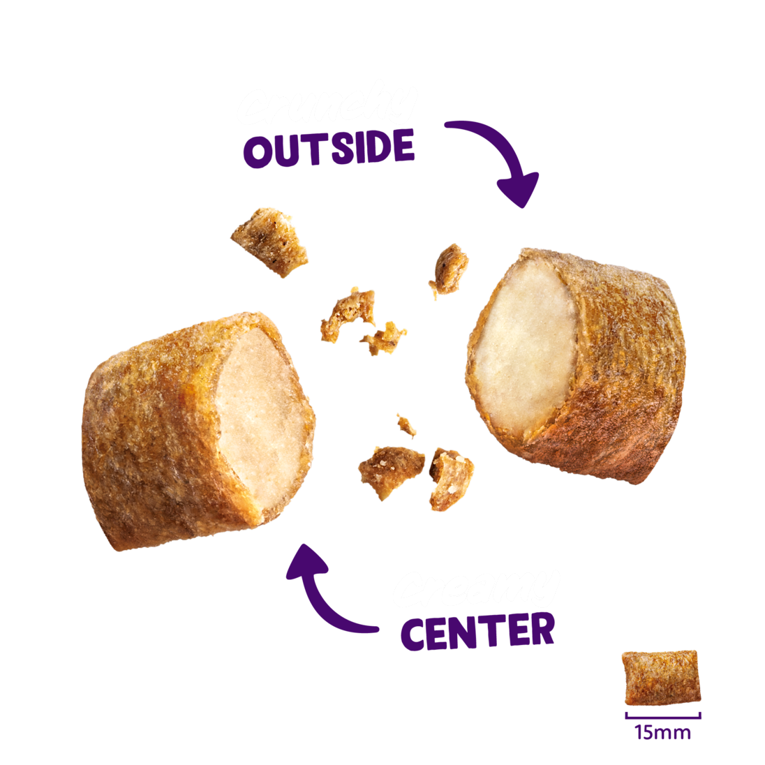 Deze knapperige snacks hebben een zachte, romige vulling waar katten helemaal dol op zijn. Ze zijn gemaakt met vers kippenvlees en natuurlijke ingrediënten, volledig graanvrij en zonder onnodige toevoegingen. En omdat elke snack minder dan 2 kcal bevat, kun je ze gerust meerdere keren per dag geven.