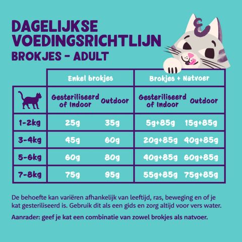 Onze krokante seniorbrokjes met vrije-uitloopkip en kalkoen zijn speciaal ontwikkeld voor oudere katten, óók als ze gesteriliseerd zijn. Gemaakt met enkel supervers vlees zonder kunstmatige kleuren, smaakstoffen of toegevoegde suiker, en volledig graanvrij en licht verteerbaar – ideaal voor gevoelige seniorbuikjes.