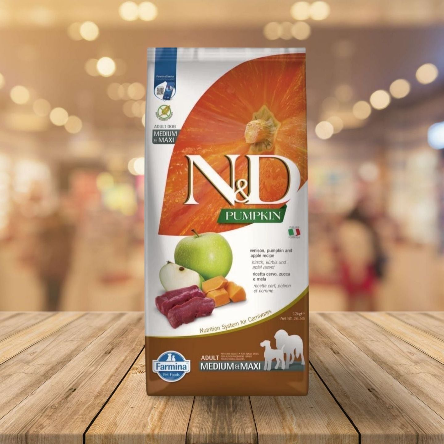 Farmina N&D Pumpkin Venison Adult is een complete, graanvrije voeding speciaal ontwikkeld voor volwassen honden van kleine rassen. Het recept bestaat uit maar liefst 96% dierlijke eiwitten, afkomstig van mals hertenvlees en wildgevangen haring. De voeding is aangevuld met pompoen (5%), een waardevolle zetmeelbron die rijk is aan antioxidanten, ontstekingsremmend werkt en een lage glycemische index heeft – ideaal voor een stabiele bloedsuikerspiegel.