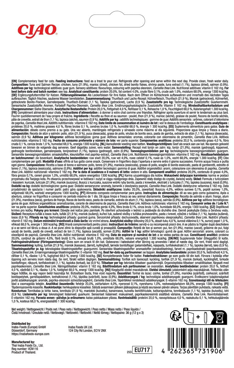 INABA Churu Tidbits Kattensnack - Tonijn en Zalm Recept (3 stuks)