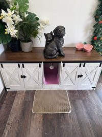 Met de Kattenbak Kast haal je niet alleen een praktische en functionele oplossing in huis, maar ook een stijlvol meubel dat naadloos past in jouw interieur. Deze kast biedt je kat privacy en zorgt ervoor dat je huis er altijd netjes en opgeruimd uitziet. Ideaal voor mensen die zowel de esthetiek van hun huis willen behouden als de functionaliteit van een kattenbak willen combineren.
