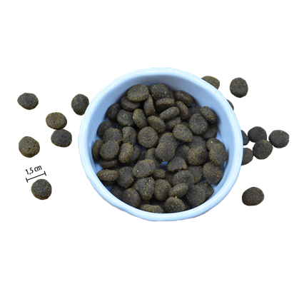 Samenstelling: Gedroogde eend (26%), gedroogde kalkoen (17%), gele erwten (16%), erwtenzetmeel (14%), pluimveevet (8%, geconserveerd met tocoferolen), gedroogde appelpulp (7%), gedroogde fazant (4%), erwteneiwit (3%), gehydrolyseerd eiwit (2%), spinazie (1%), teunisbloemolie (0,5%), wortelen (0,5%), glucosaminesulfaat, MOS, chondroïtinesulfaat, FOS, yucca schidigera, goudsbloem, brandnetel, spirulina, kurkuma, citruspulp, cranberry, kamille, kaneel.