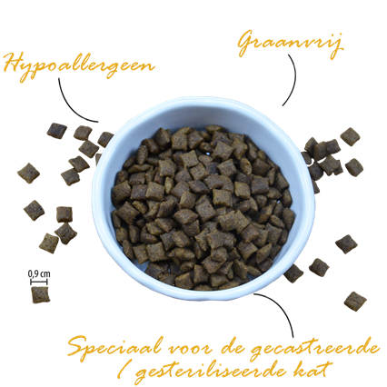 Evenwichtige, graanvrije voeding voor gesteriliseerde of gecastreerde katten