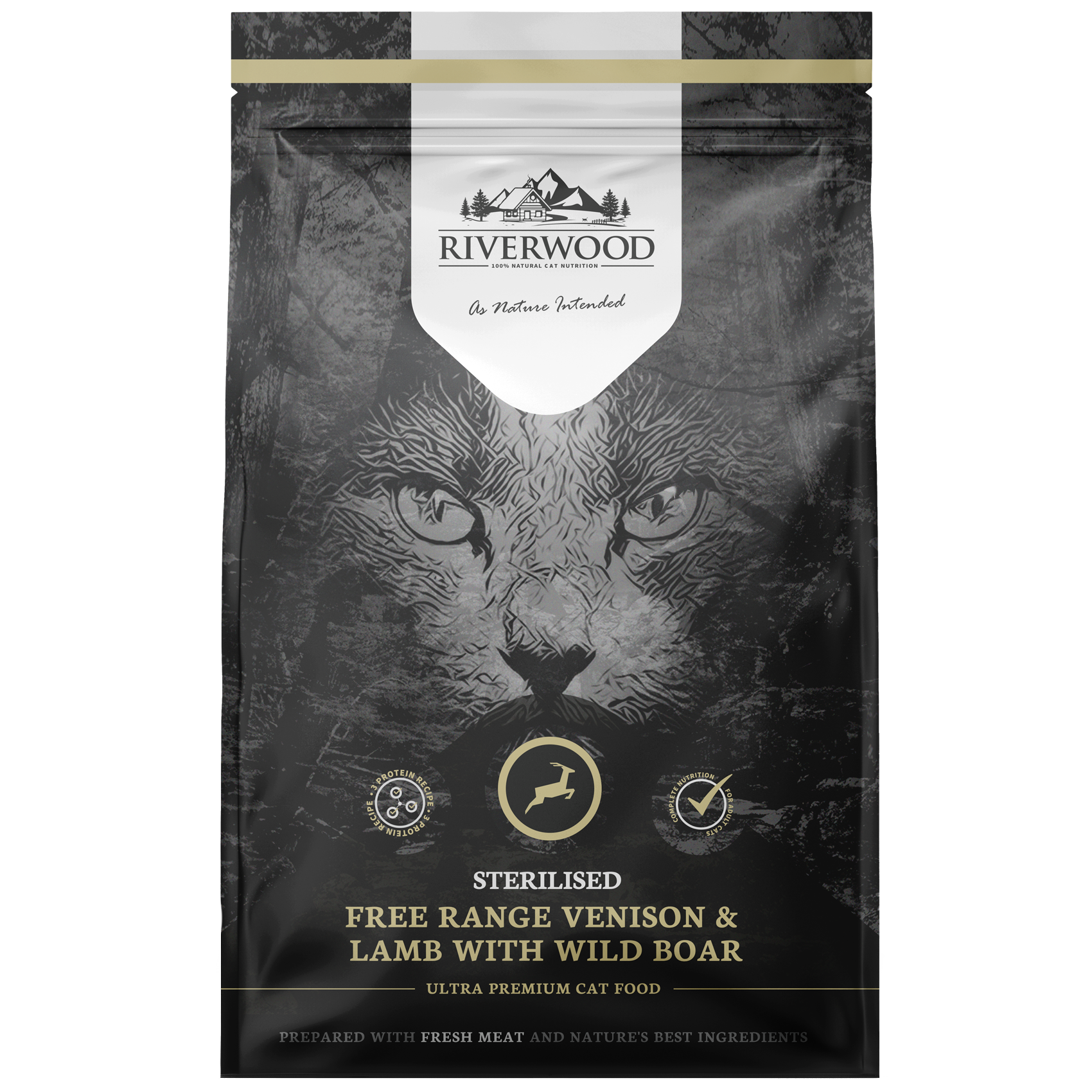 Gesteriliseerde of gecastreerde katten hebben andere voedingsbehoeften. Riverwood – Sterilised Venison/Lamb/Wild Boar is speciaal ontwikkeld om hen te helpen een gezond gewicht te behouden zonder in te leveren op smaak of voedingswaarde.