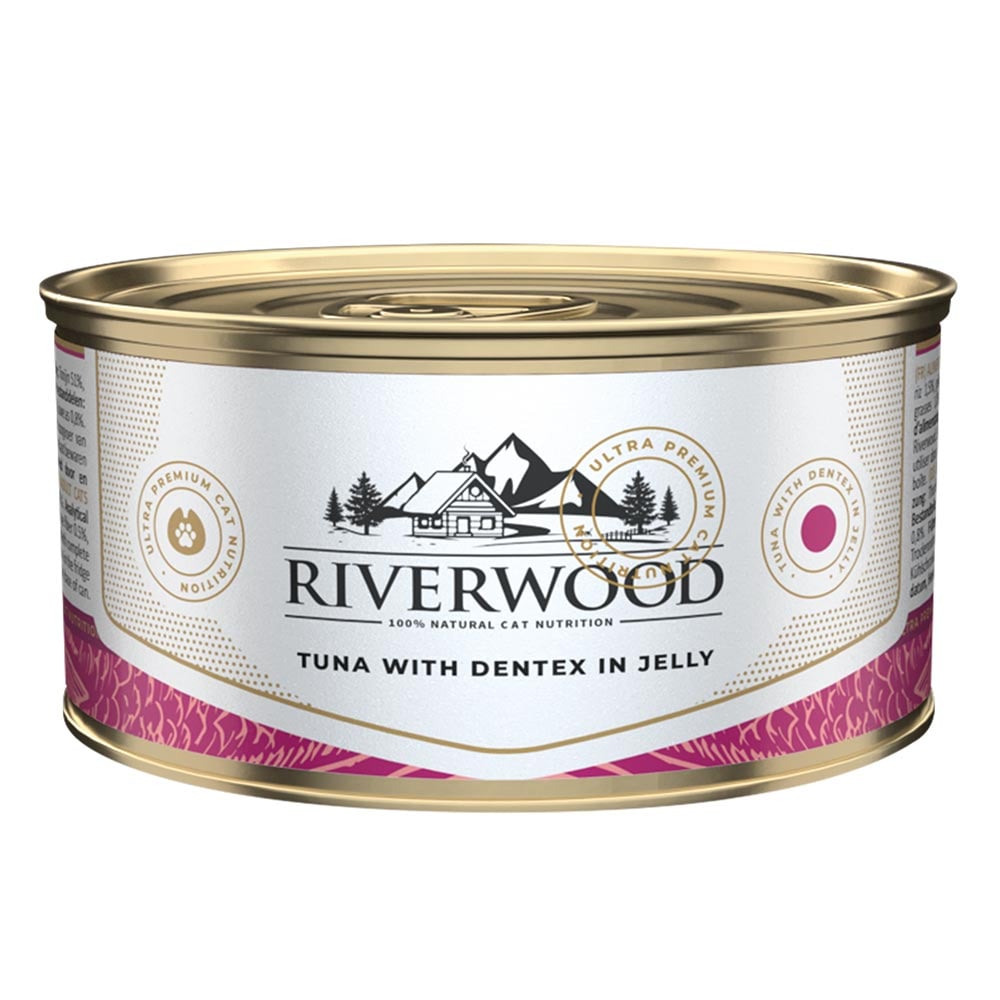 Geef je kat een heerlijke maaltijd met Riverwood – Tuna with Dentex in Jelly. Deze aanvullende natvoeding bevat maar liefst 51% tonijn en 6% dentex (zeevis uit de baars familie), gecombineerd met een klein beetje rijst en een zachte, plantaardige gelatine.