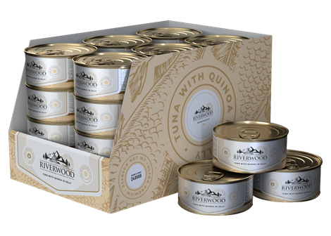 Voedingsadvies: Geef tot 2 blikjes per dag als aanvullende voeding, in combinatie met Riverwood droogvoer.