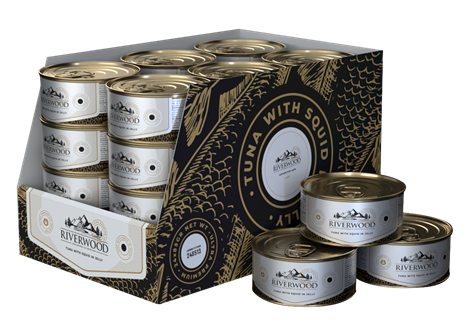 Voedingsadvies: Geef tot 2 blikjes per dag als aanvullende voeding naast Riverwood droogvoer. Serveren op kamertemperatuur.