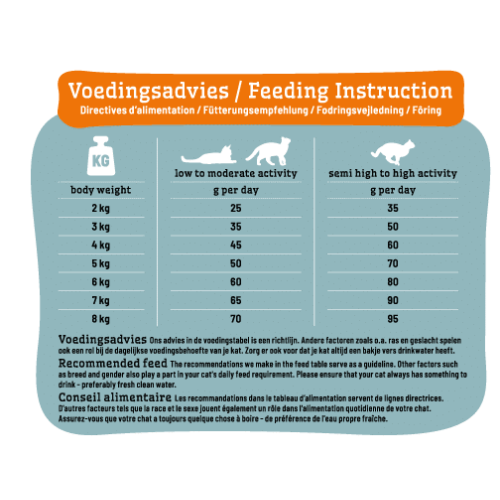 De combinatie van rijst en aardappel maakt het voer licht verteerbaar, terwijl omega-3 en omega-6 vetzuren bijdragen aan een gezonde huid en een glanzende vacht. Zo help je je kat om weer zichtbaar in topconditie te komen.
