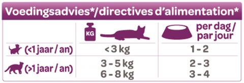 Chicken: eiwit 8%, vetgehalte 7%, ruwe celstof 0,1%, ruwe as 2%, vocht 80%.