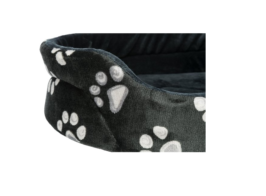 De Trixie Mand Jimmy Ovaal Zwart met Pootprint 44x35 cm is een zachte en comfortabele hondenmand die jouw hond een fijne plek biedt om in weg te kruipen. De mand heeft een opstaande rand met schuimrubber vulling, bekleed met zacht pluche voor extra comfort en een veilig gevoel.