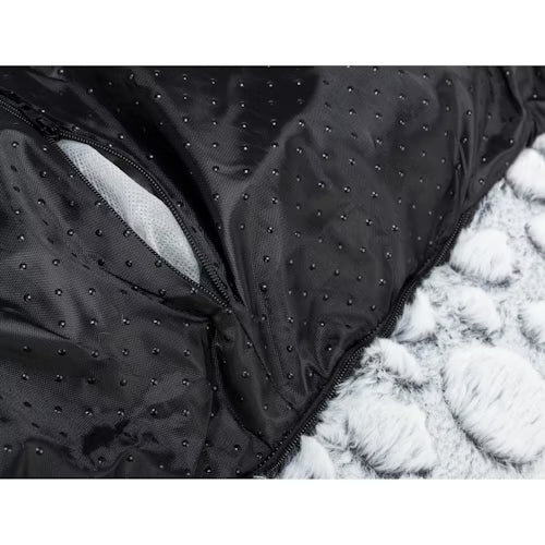 De mand is gevuld met polyestervlies, waardoor de hond voldoende steun krijgt en zijn kop heerlijk op de rand kan laten rusten. Dankzij de lage instap en slipvaste onderkant kan jouw hond zonder moeite in- en uit de mand stappen. Het geïntegreerde kussen maakt de mand nog comfortabeler en uitnodigend voor jouw viervoeter.