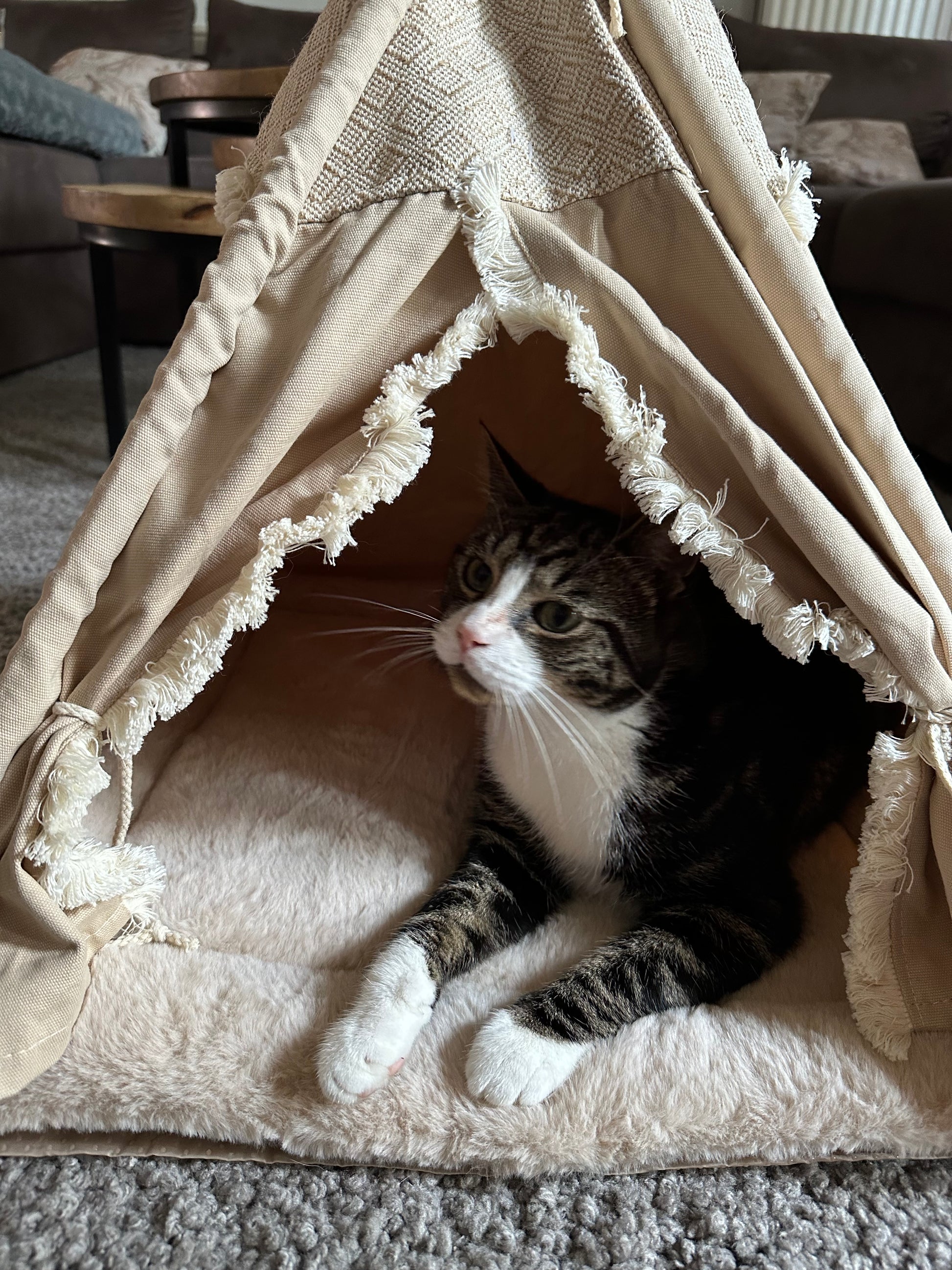 • Veiligheid: Controleer of de tipi stabiel staat, vooral bij speelse katten.