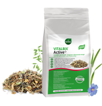 Ingrediënten: haverzemelen brokjes, luzerne brokjes, lijnzaadschilfers, timothee (losse vezels), timothee brokjes, zonnebloemzaadschrootvoer, erwtenvlokken, lijnzaadolie, lijnzaad, cichoreipulp (inuline vezels), appelpulp (pectine vezels), lijnzaad geplet (met natuurlijke antioxidanten), monocalciumfosfaat, calciumcarbonaat, magnesiumoxide.